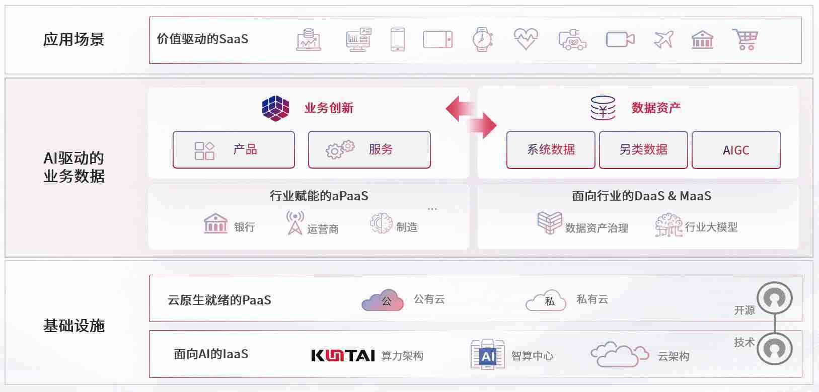 数字时代,,,围绕企业数字化转型的关键要素,,,,988钱包数码开创性的提出数云融合战略和技术体系框架,,,,着力在云原生、、、数字原生、、、、AI原生和信创产业上架构产品和服务能力,,,为处在不同数字化转型阶段的快消零售、、、汽车、、、、金融、、、、医疗、、、、政企、、、教育、、、运营商等行业客户提供泛在的敏捷IT能力和融合的数据驱动能力,,,,构建跨界融合创新的数字业务场景和新业务模式,,,,助力企业级客户建立面向未来的核心能力和竞争优势,,,,全面推动社会的数字化、、、智能化转型升级。。。。
